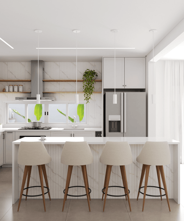 Criação de ambientes completos, desde o conceito até o detalhamento de marcenaria, iluminação e decoração, com foco em conforto, funcionalidade e estética.